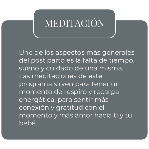 Este programa es una programación completa para iniciar la recuperación de suelo pélvico, abdomen y acondicionamiento físico general con videos guiados. Así como apoyo emocional-mental con meditaciones.