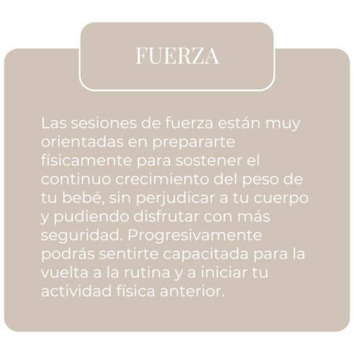 Sesión de entrenamiento centrada en el tren superior para fortalecer los brazos para sostener al bebé y fortalecer la espalda para prevenir dolores.